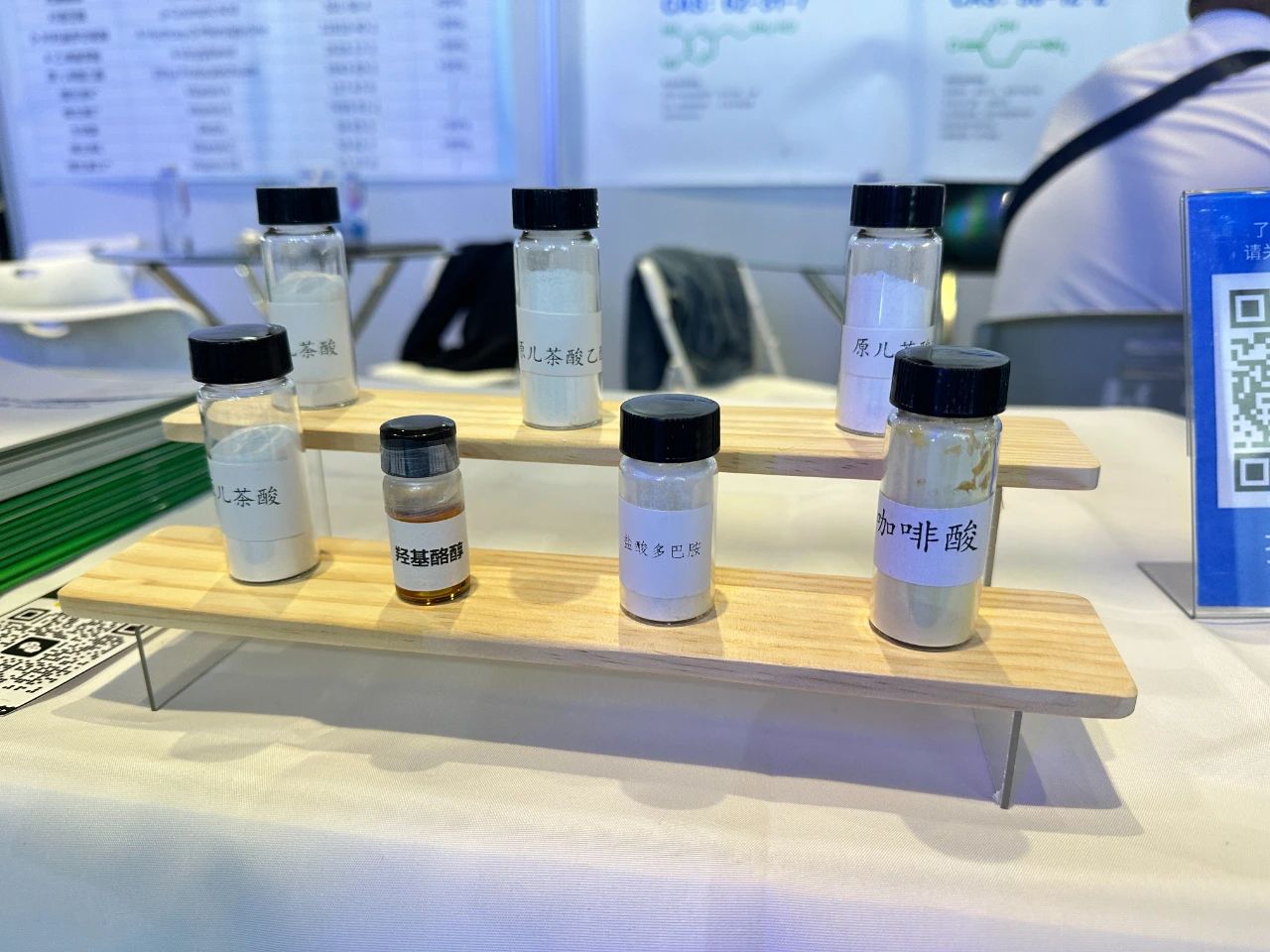 展会上,唯铂莱携带各式样品,使参展的朋友可以更直观的触及产品,工作人员也为客户进行专业的讲解,其中,羟基酪醇、烟酰胺、原儿茶酸、γ-氨基丁酸等产品广受好评,欢迎新老朋友前来交流。