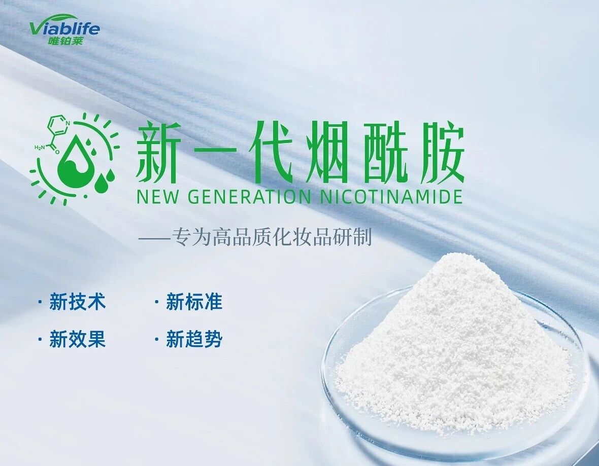 新技术:ViablifeBiolego®引领烟酰胺绿色生物智造潮流;专线专产,专为高品质化妆品研制;7项核心专利赋能,科技创造更多美好。