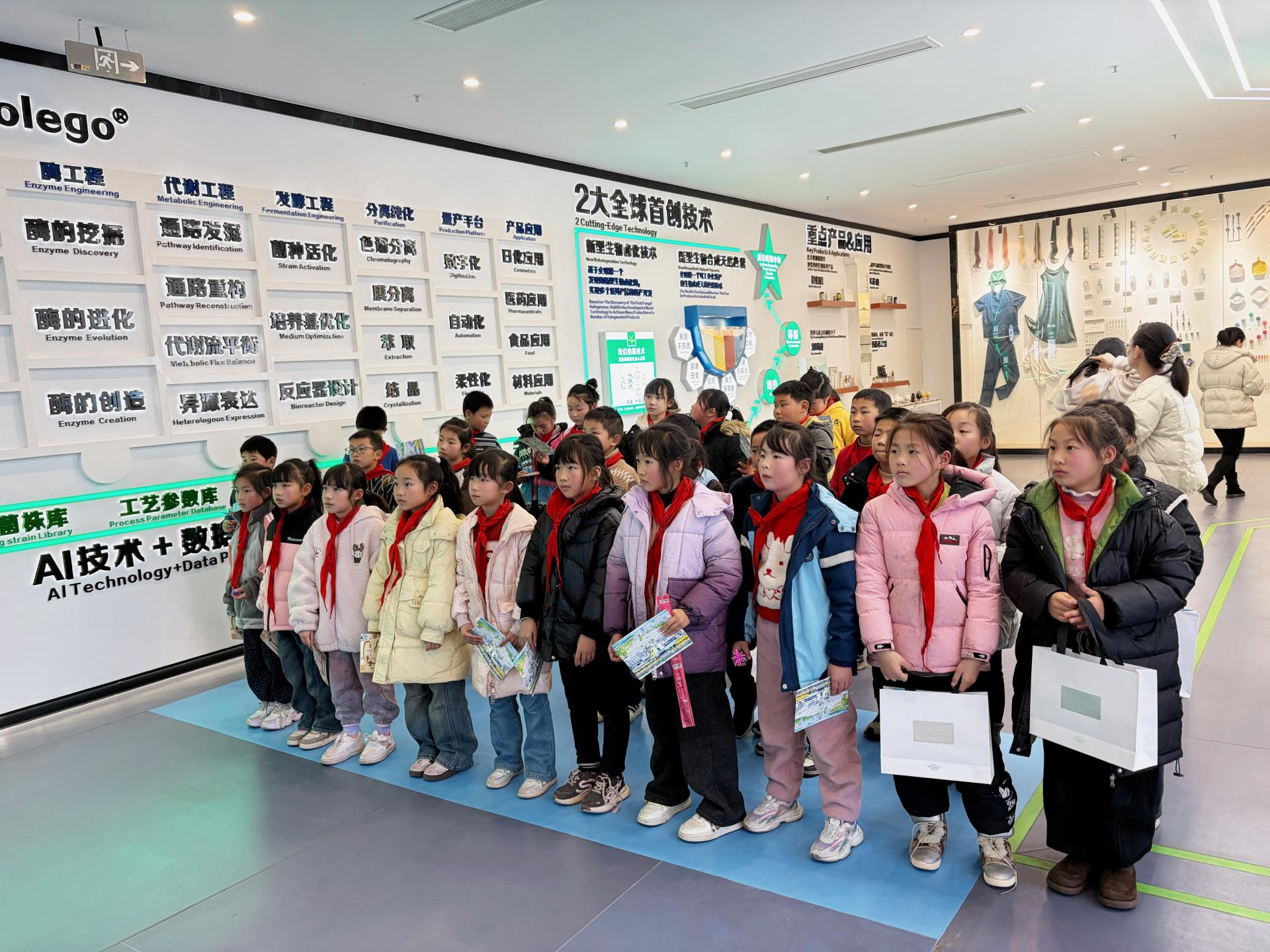 研学的倒数第二站,孩子们走进了特色企业展区。在这里,他们惊喜地发现:原来生物合成技术就在我们身边!导师用通俗的语言,把唯铂莱的生物合成成果转化为孩子能听懂的生活案例,让孩子们明白“科学能让生活更美好”,真切感受到科技研发的力量~